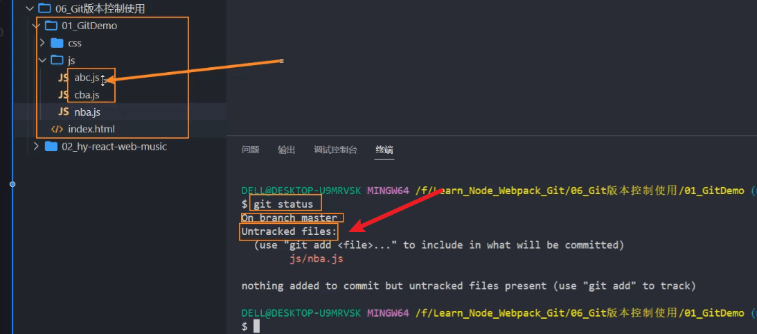 我们可以在当前目录创建一个.gitignore文件,然后在里面写上不需要被跟踪提交的文件名称 (在实际开发中不需要自己创建,比如vue项目,我们肯定会用到vue脚手架,这个脚手架会自动创建.gitignore里面已经写好了需要忽略的文件名称)