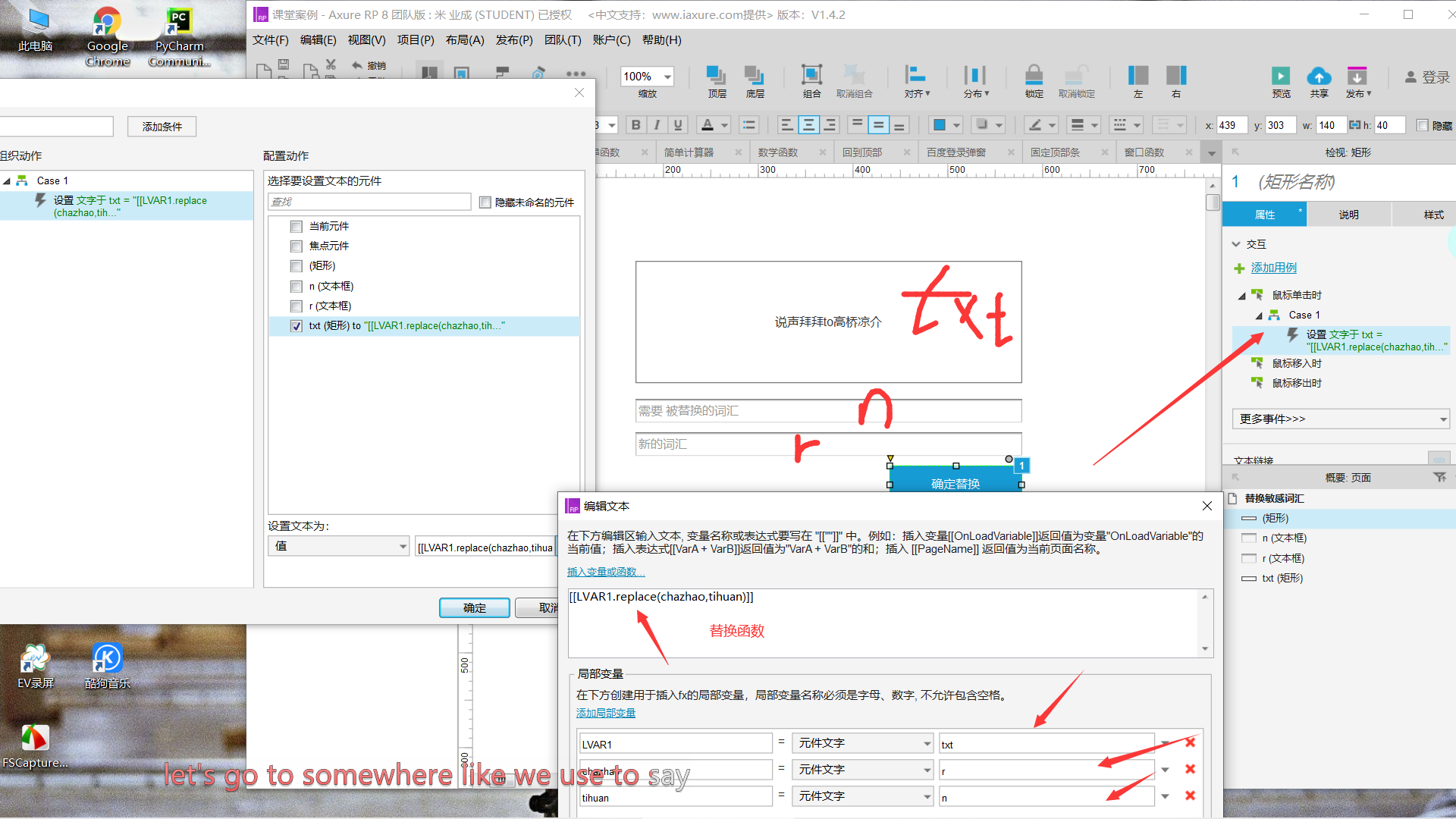 4-添加热区在最上层,点击热区(添加交互,点击则选中对应文字矩形,文字矩形中字体也就变红,再添加让滑块移动到指定位置)